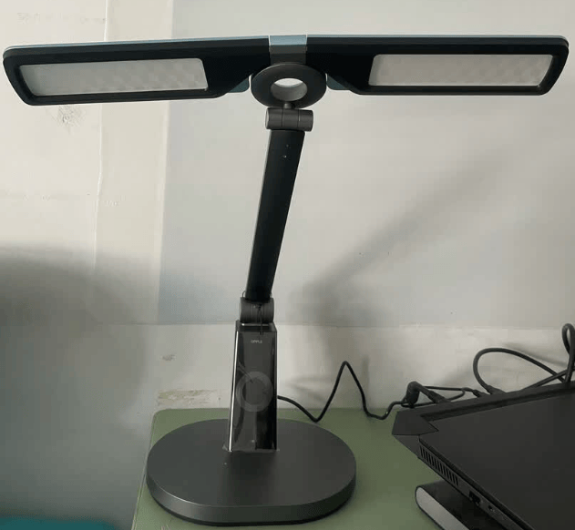 这款护眼台灯采用紫光激发技术,有效降低蓝光含量,对眼睛更加友好。光源面直径55.2cm,能够轻松照亮约1.6米的桌面,照明达到了国AA级标准。不过因为采用直发光设计,光线直视时会有些刺眼,眼睛长时间盯着可能会感到不适。显色指数高达Ra96,色彩还原效果相对优秀,日常学习和办公使用都比较理想。采用了四区背光漫反射,减少光线明暗差。