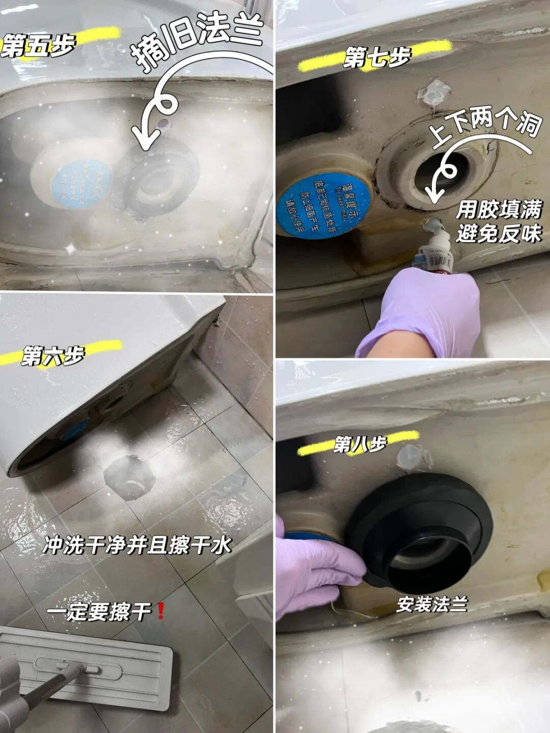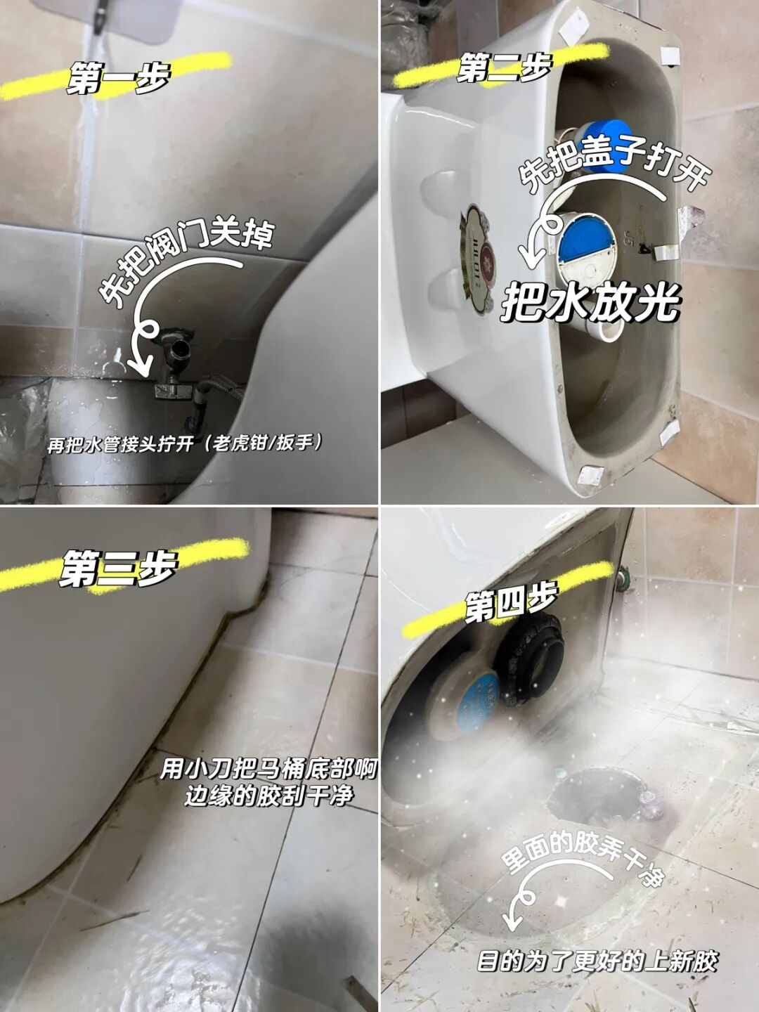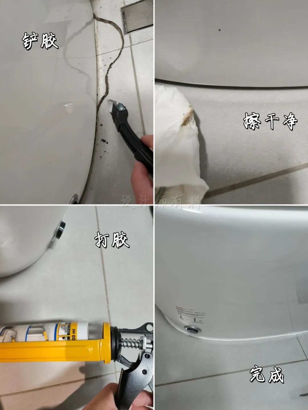 ③马桶底部打胶密封