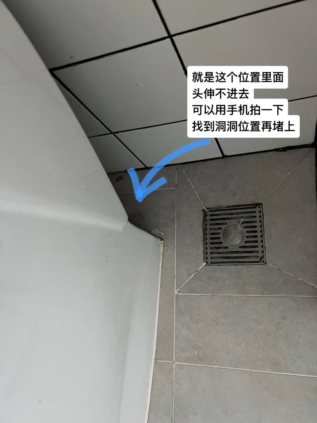 试着用手机伸进去拍照找到位置,把它堵上。