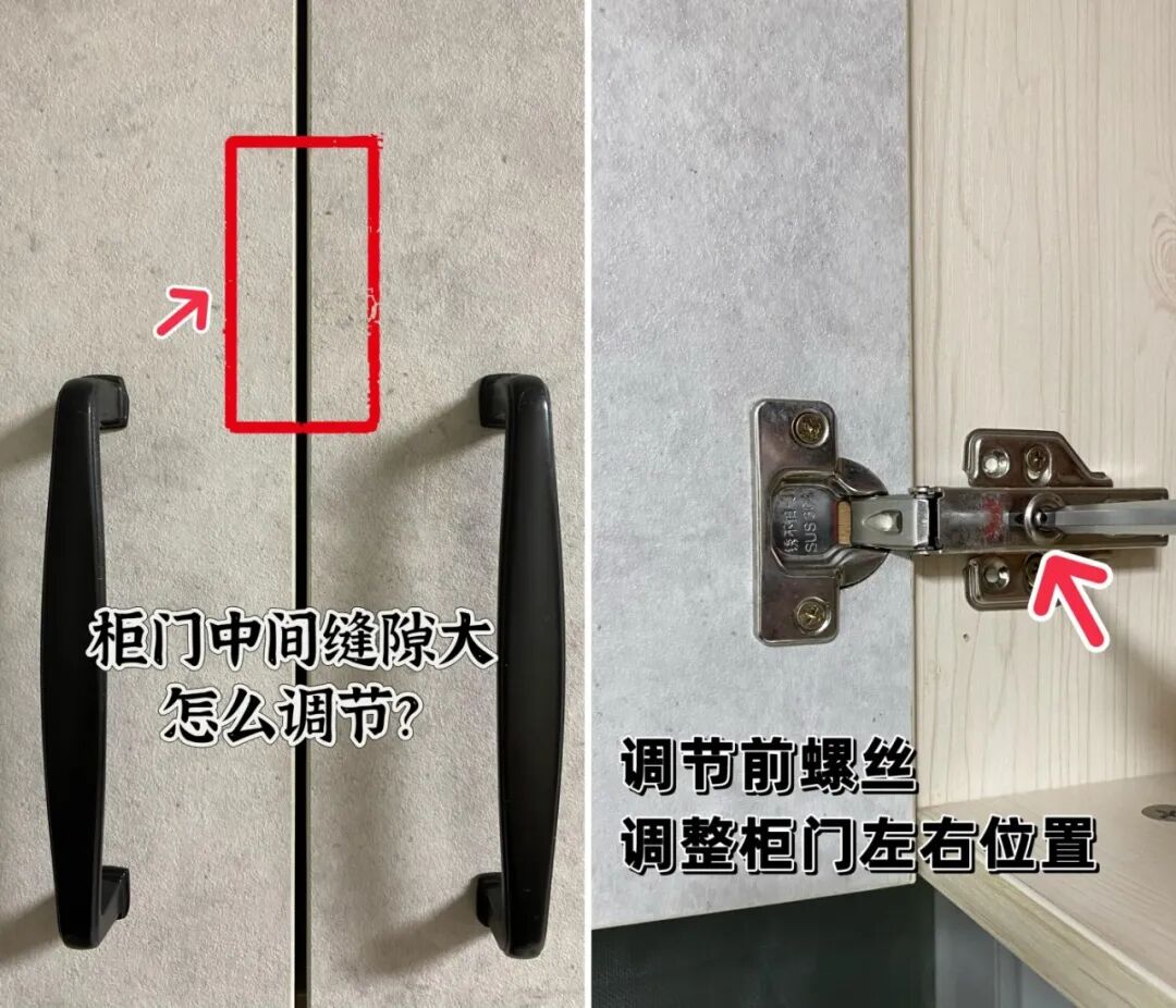 左右调节——柜门缝隙太大。