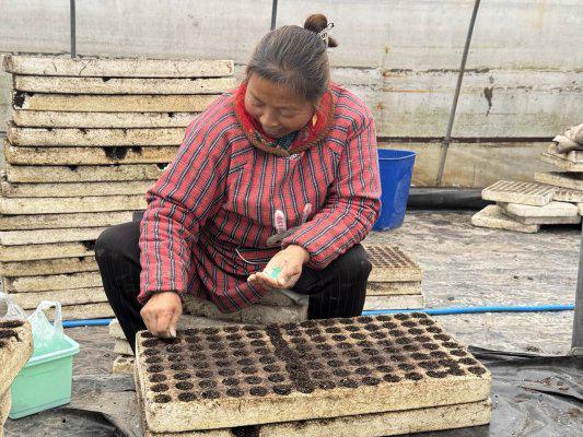 与此同时,苗盘基质装填工作也在紧锣密鼓地进行中。工作人员熟练地将基质装入育苗盘,并通过拍盘、刮平工序,确保每个孔穴的基质松紧度适宜、填充饱满。这一环节看似简单,实则讲究“手感”与“眼力”,既要防止基质过紧影响根系呼吸,又要避免过松导致漏种。收购站通过统一培训、现场示范,确保每一位参与装填的人员都能掌握技术要领,实现育苗盘标准化装填。