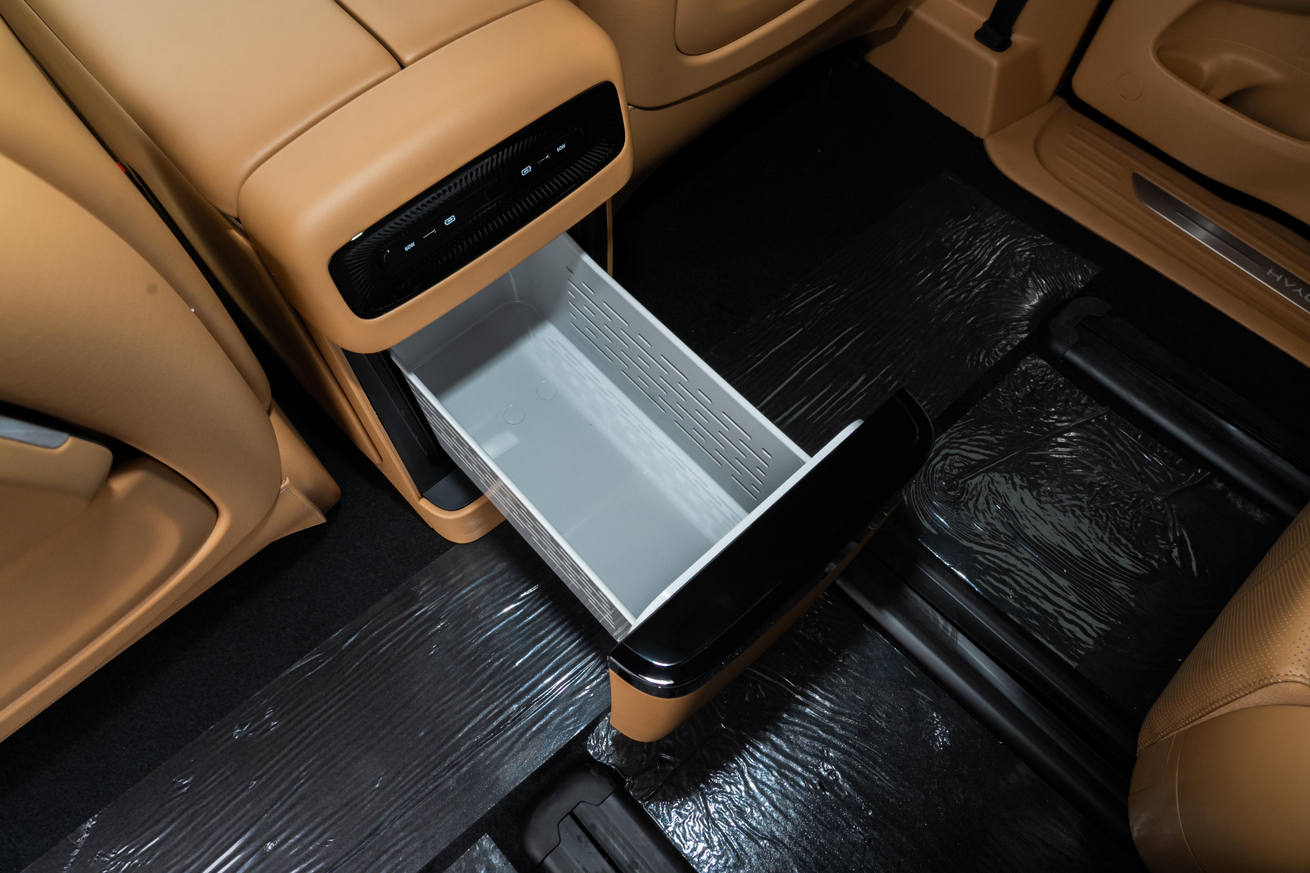 车辆细节设计充分兼顾家用场景需求,车辆地台高度较低,老人腿脚不便、孩子年龄较小时,上车一步即可轻松踏上,无需跨越较高台阶,减少了老人上车磕碰、孩子爬车不便的情况。车内配备智能冷暖车载冰箱,支持加热、冷藏、冷冻三种功能,夏季可存放冷饮、水果,冬季可温热牛奶、辅食,出游携带的零食、生鲜可妥善存放,降低食材变质概率。全车搭载20个扬声器,长途出行时音乐播放音效饱满细腻,可有效提升座舱舒适感与出行体验。