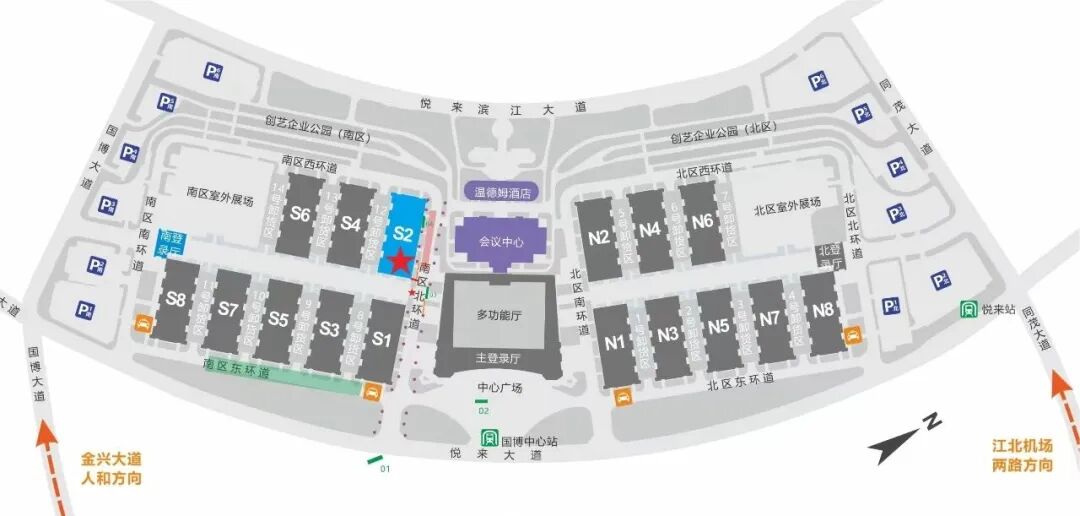 地铁:机场T3航站楼/T2航站楼乘10号线(王家庄方向)→悦来站换乘“国博专线”→国博中心站1号出口,步行3分钟至展馆。