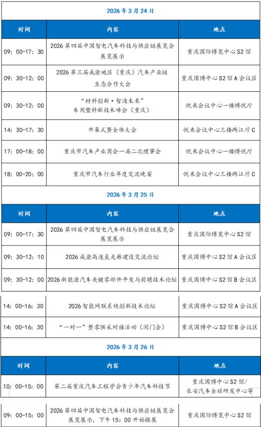 2026第四届中国智电汽车科技与供应链展览会将于2026年3月24-26日,在重庆国际博览中心盛大开幕!同期将举办"重庆汽车行业第37届年会”、“2026第三届成渝地区(重庆)汽车产业链生态合作大会”等主旨大会及系列专题论坛。