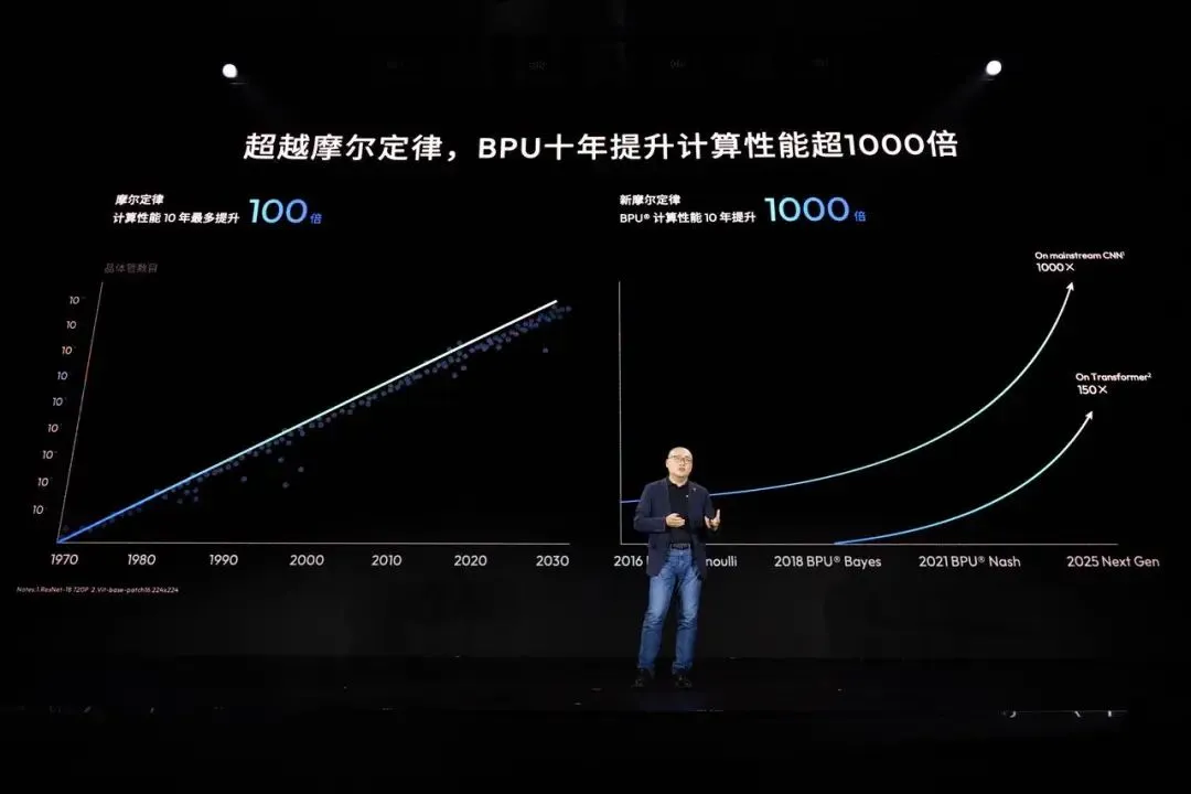 近 3 年来,地平线国际顶会收录文章超过 40 篇、学术成果引用量超过 10 万次、全球专利申请达到 2000 件。10 年来,地平线推出三代 BPU,计算性能提升超 1000 倍,支持超 10 款计算方案规模化量产。
