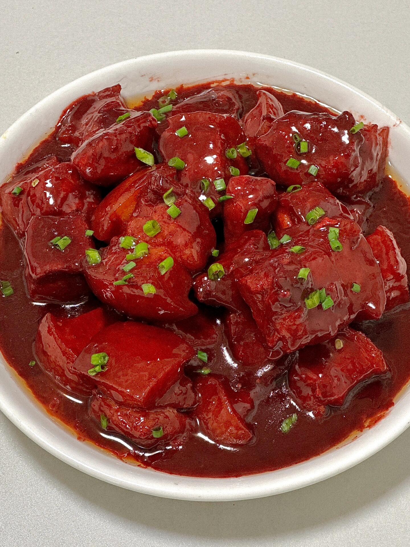 炖到筷子能轻松插进肉里,汤汁也变得浓稠的时候,开大火收汁。要不停地翻动,让汤汁裹满每块肉,直到剩下浓稠的红亮酱汁就可以出锅了!装盘的时候撒点葱花或者白芝麻点缀,颜值瞬间提升一个档次。