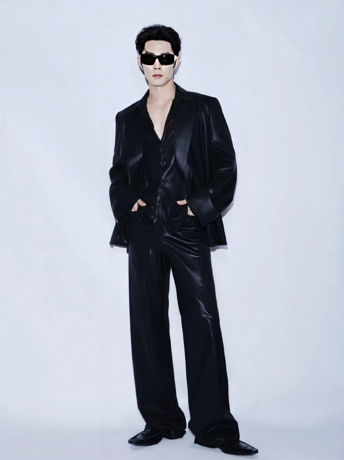 肖战这套黑色亮面皮革造型,你打几分?