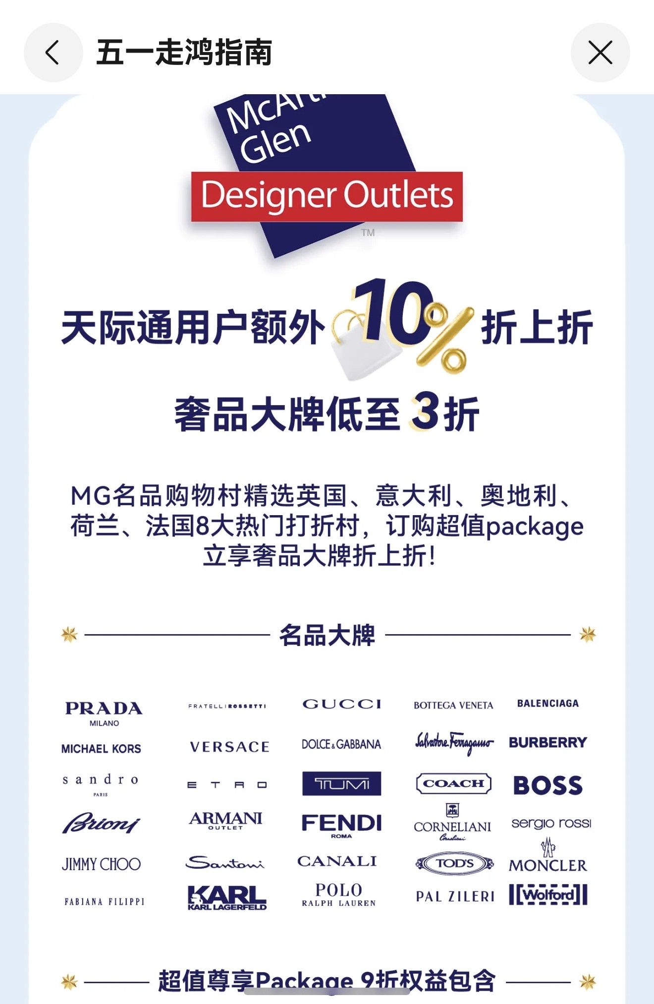 长线漫游欧洲,邂逅异域人文底蕴与轻奢购物乐趣。华为天际通联合欧洲7大热门国家McArthurGlen名品购物村推出专属礼遇。在品牌常年3-7折基础上,天际通用户可再叠加10%折上折。乘坐免费往返班车直达购物村,不用费心规划交通;逛累了可到VIP休息室稍作休憩,免费享用一杯饮品。凭领取的5欧元餐饮券,可走进当地特色小馆,点一份正宗的意面或法餐,感受欧洲的饮食文化(巴黎门店更有免费季节限定饮品)。购物满500欧元,即可获赠维也纳美泉宫门票及导游讲解,漫步在巴洛克风格的宫殿与花园中,触摸欧洲历史的痕迹,让潮流购物与人文体验完美融合,收获双倍旅行惊喜。