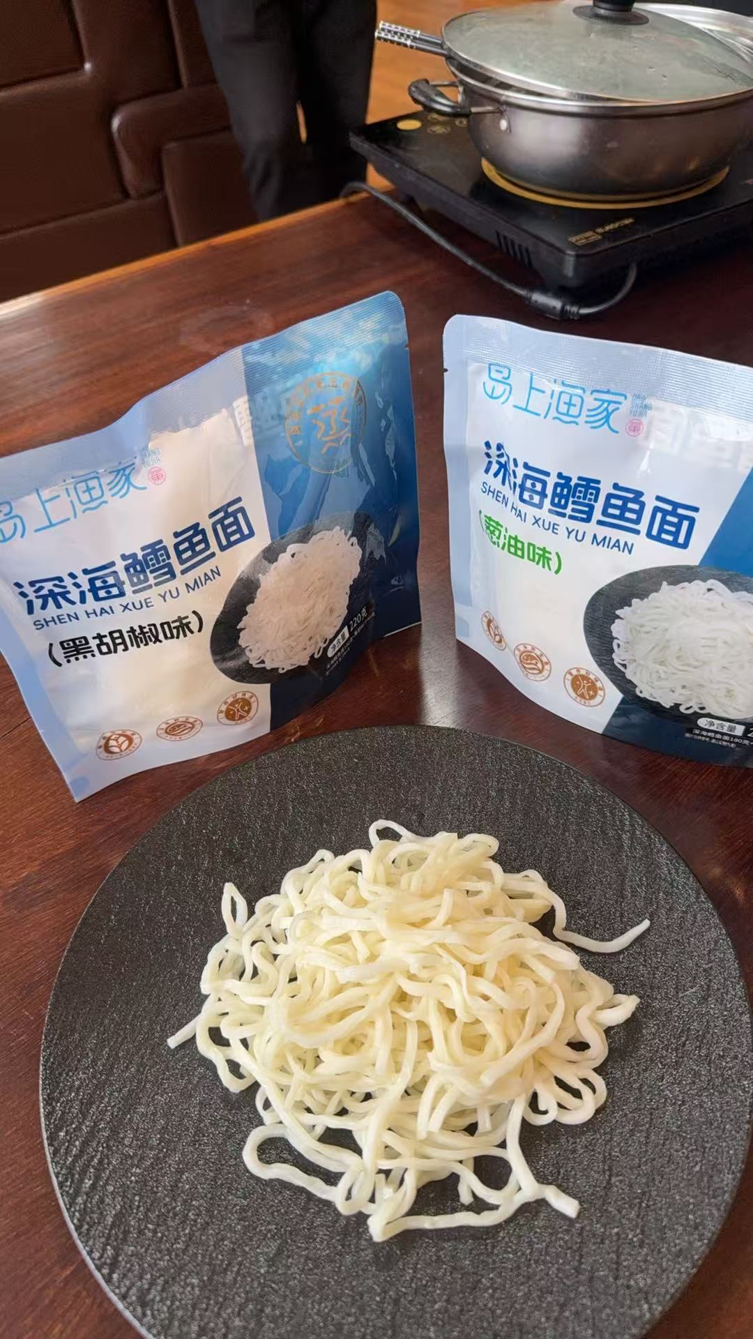 有客户会问:“为啥不选国产鳕鱼?” 不是国产的不好,而是咱做鳕鱼面30多年,试过十几种产地的鳕鱼,反复对比下来,北大西洋的野生鳕鱼在口感和稳定性上更符合咱的标准。当然,不管是哪来的鳕鱼,“新鲜”都是底线——从捕捞到加工不超过48小时,全程冷链锁鲜,到厂时还是带着冰碴的状态,这才能保证做出来的鳕鱼面鲜而不腥。
