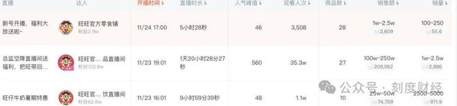 线上布局方面,“旺旺食品直播间”虽仅有3万粉丝,但其聚焦休闲食品的垂直定位,与乳品直播间形成协同效应,完善了品牌在抖音平台的品类覆盖,展现出细分品类的增长潜力。