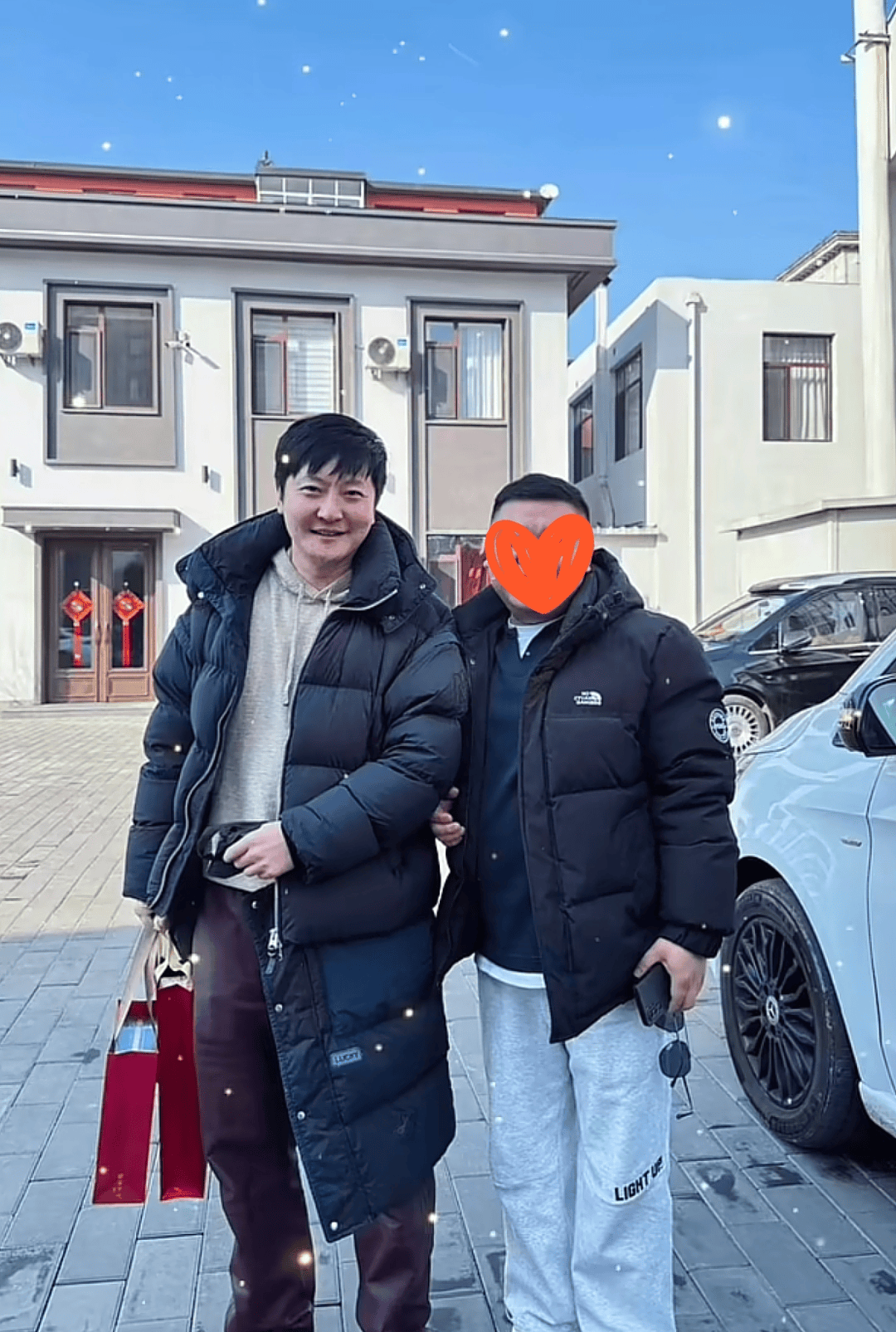 郭京飞选择了回辽宁走亲戚,和大多数人一样,在家的氛围中感受传统的节日气息。身处东北,气温明显低于南方,郭京飞的穿着也很贴合实际。他在寒冷的天气里套了两件羽绒服,里面还搭了一件毛呢外套,显得穿得十分厚实,虽然看上去略显笨重,却是求实用胜于时尚的状态。作为演员,他更关注舒适度,这和很多人过年时的穿衣习惯相符,不必刻意打扮。