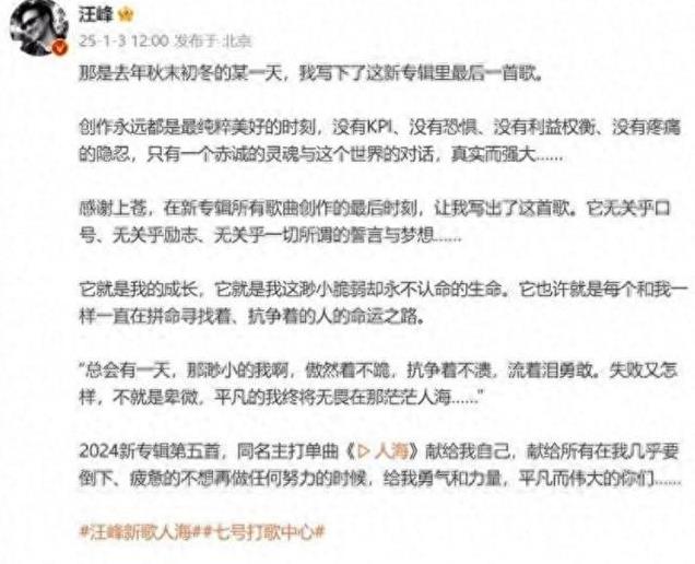 汪峰,这摇滚界的“大佬”那可是话题制造机!新歌《总会有一天,那渺小的我》就像是一颗“定时炸弹”,精准地在“明德事变”这个大瓜事件里“引爆”了。网友们那叫一个激动,纷纷开启调侃模式:“哎妈,这新歌发的,简直就是‘神来之笔’,难道汪峰有‘热点预知能力’?” 据音乐平台的数据显示,汪峰新歌发布后,播放量稳步攀升,可这热度就像坐过山车,时不时被其他热点事件“撞得晃悠两下”。为啥会这样?现在娱乐新闻“爆炸式”增长,热点事件就跟流星似的,一个接一个。汪峰作为知名摇滚歌手,本身就自带流量,他的新歌发布自然备受关注。再加上网友那“凑热闹不嫌事儿大”的心态,一有什么热点就到处找关联,这不,汪峰的新歌就“中枪”。