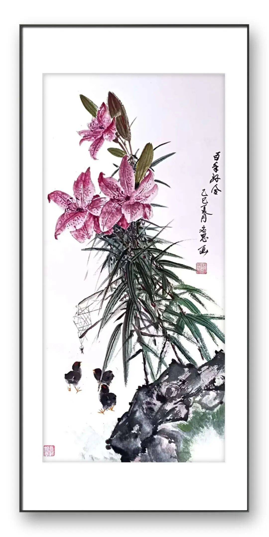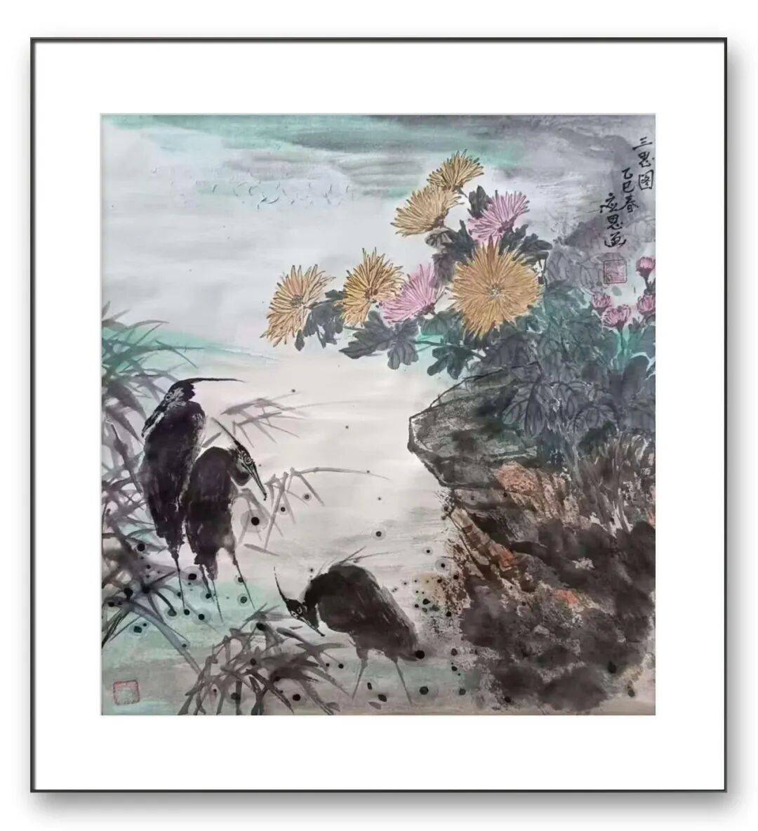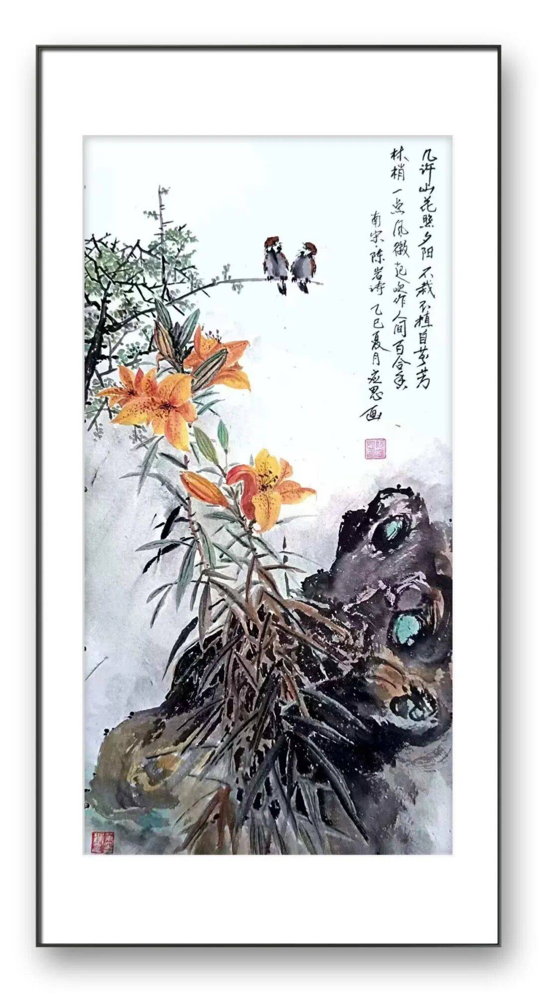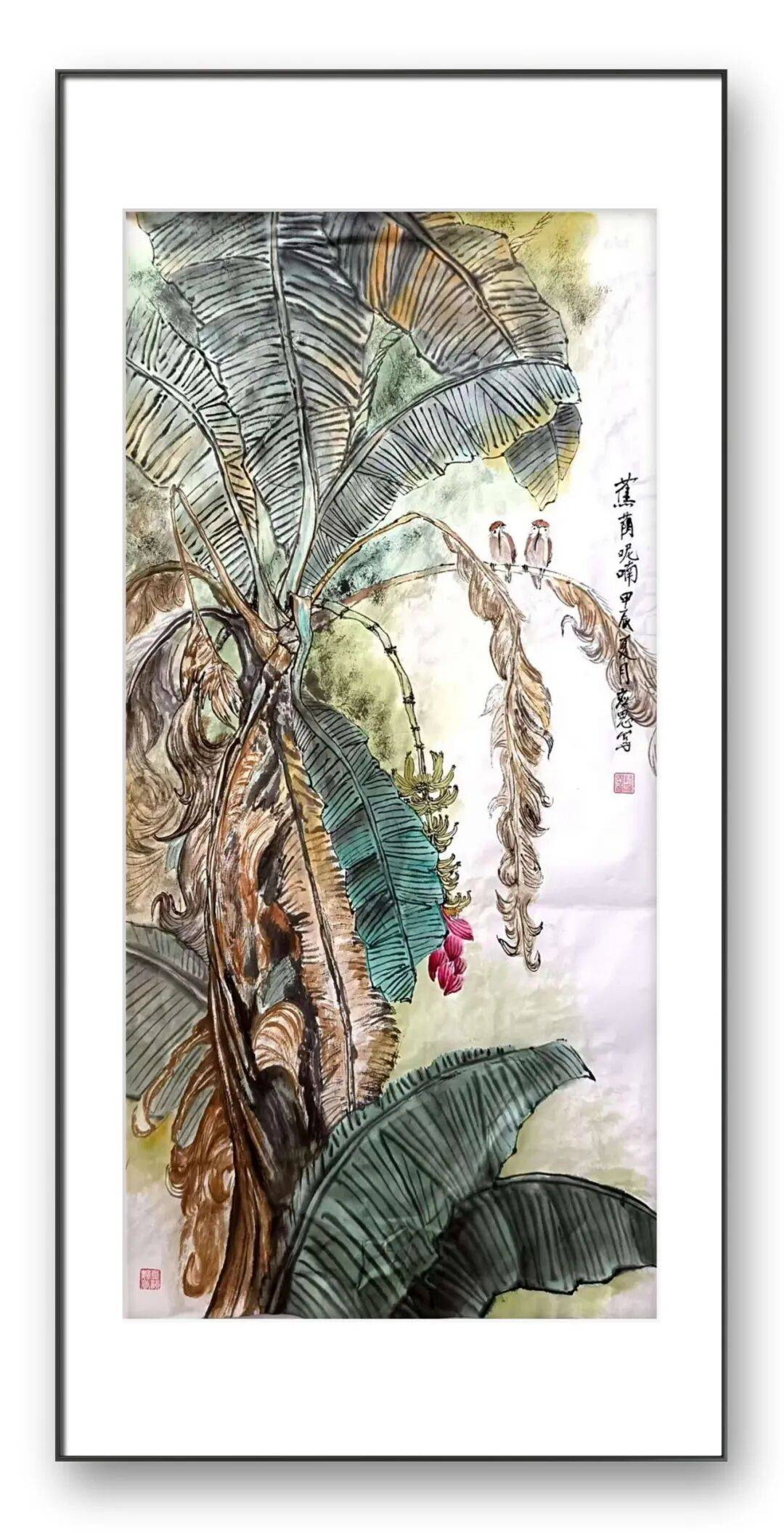 花鸟画是阮应思老师最为擅长的领域,也是他情感表达最为直接的载体。他酷爱花鸟画,并非单纯对花鸟形态的模仿,而是深入体察花鸟的神韵与灵性,将自身的情感与感悟融入其中,实现了“以物喻心、以笔传情”的艺术境界。中国花鸟画历来注重“写意传神”,讲究“外师造化,中得心源”,阮应思老师深谙此道,他的花鸟画,既继承了传统写意花鸟的精髓,又融入了自身的生活体验与审美追求,形成了兼具传统韵味与时代气息的独特风格。