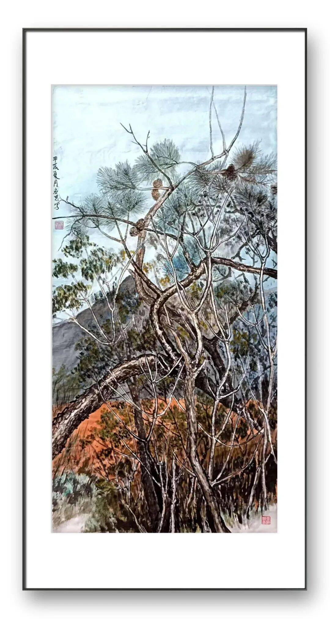 除了花鸟画,阮应思老师亦兼画山水,虽非主攻,却也颇具造诣,尽显大家风范。他的山水画,得益于多年的旅游经历,他遍历名山大川,将所见所闻、所感所悟融入笔墨,形成了“意境悠远、气韵生动”的风格。中国山水画追求“诗中有画、画中有诗”,讲究“天人合一”的哲学理念,阮应思老师的山水画,正是这种理念的生动体现,他以笔墨为媒介,将自然山水的雄浑与灵秀、苍茫与清雅完美呈现,让观者在欣赏画作的同时,能够感受到山水之间的意境之美与哲学之思。