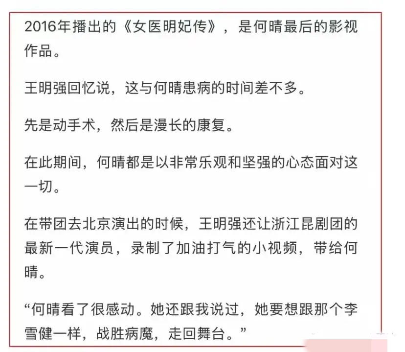 原来何晴患脑瘤做过手术后,还中过风,到后面说话都说不清楚。