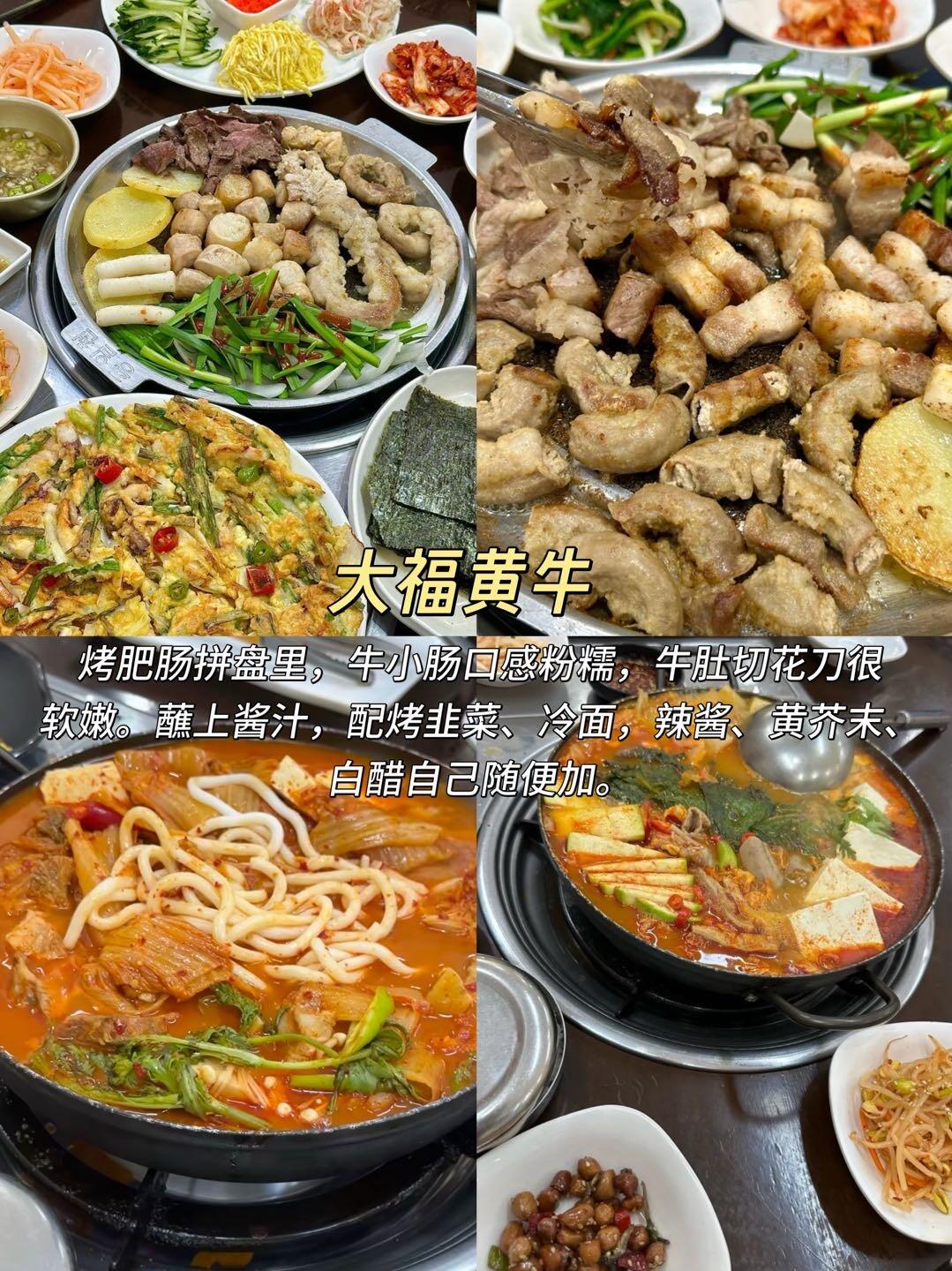 📍大福黄牛:烤肥肠拼盘里,牛小肠口感粉糯,牛肚切花刀很软嫩。蘸上酱汁,配烤韭菜、冷面,辣酱、黄芥末、醋自己随便加。