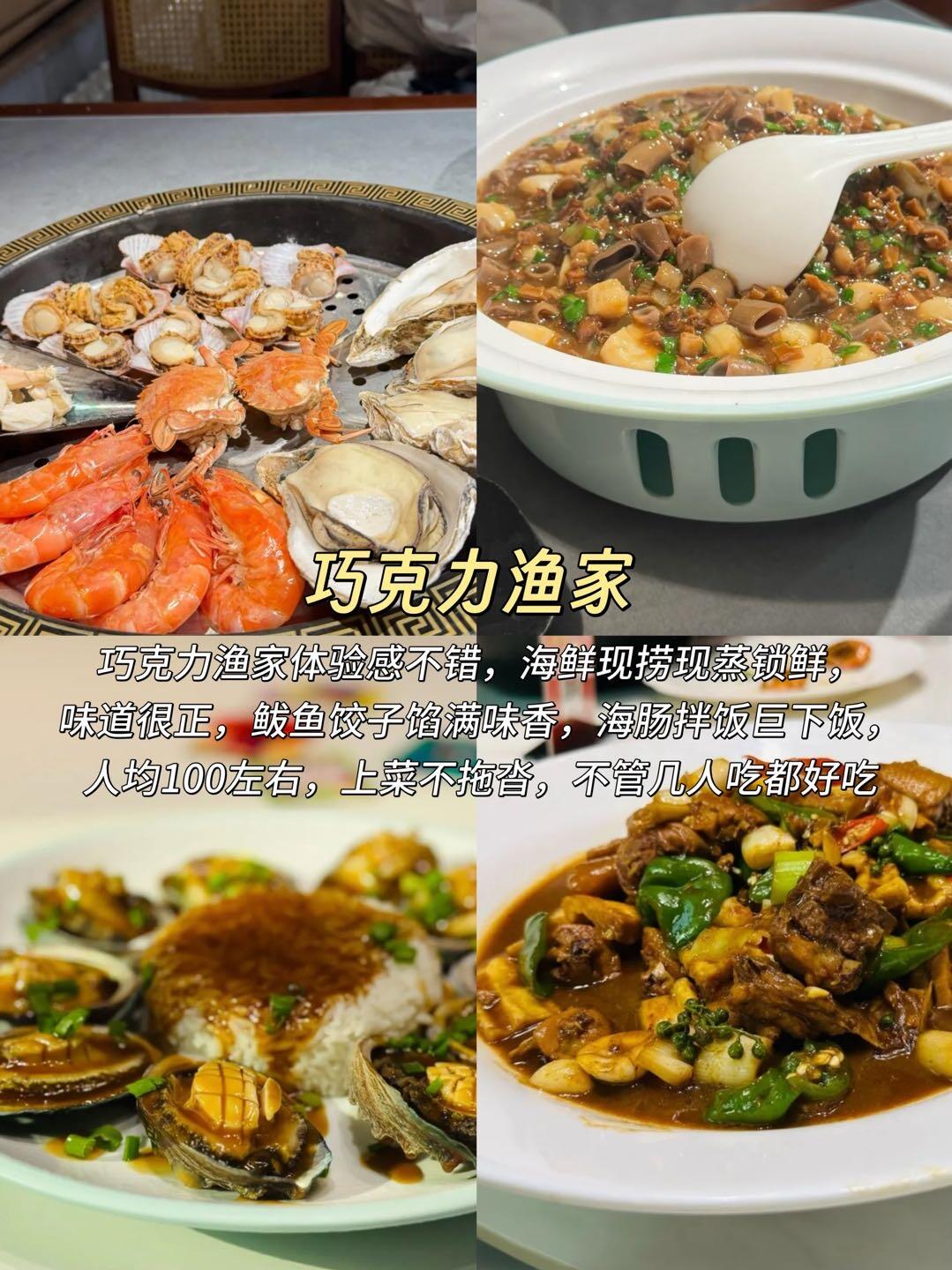 📍巧克力渔家:海鲜现捞现蒸锁鲜,味道很正,鲅鱼饺子馅满味香,海肠拌饭巨下饭,人均100左右,上菜不拖沓,不管几人吃都好吃