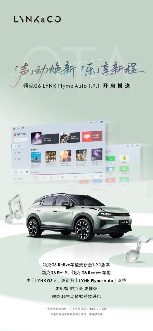 当代年轻人对“个性化”的追求,早已延伸到汽车领域。他们不喜欢千篇一律的车机界面和固定功能,更希望车机能根据自己的习惯定制操作逻辑,成为彰显个人风格的一部分。这种对“专属感”的需求,推动车机系统从“标准化”走向“定制化”。领克精准捕捉到年轻人的这份诉求,近期为06系列带来车机更新:领克06 Relive更新至1.9.1版本,领克06 EM-P、领克06 Renew切换为LYNK Flyme Auto系统,以“更机智、更沉浸、更懂你”为核心,让车机更贴合年轻人的个性化需求,打造专属智能体验。