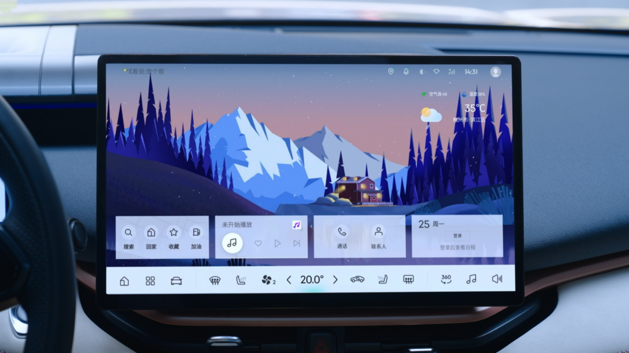 界面定制化设计,让车机成为个人风格的延伸。优化后的系统桌面采用多形态设计,地图桌面实时显示路况,壁纸桌面支持预设与自定义切换,年轻人可上传喜欢的图片作为壁纸,让桌面告别千篇一律。桌面卡片升级为快捷卡片,新增应用建议、音乐推荐和场景推荐功能,同时支持按需排列常用功能,将高频应用放在显眼位置,打造符合个人使用习惯的操作布局。控制中心简化为一页布局,支持快捷按钮自由编辑,可根据喜好调整功能位置,任务栏新增的SmartBar能智能匹配场景需求,让信息展示与操作逻辑都贴合个人偏好。