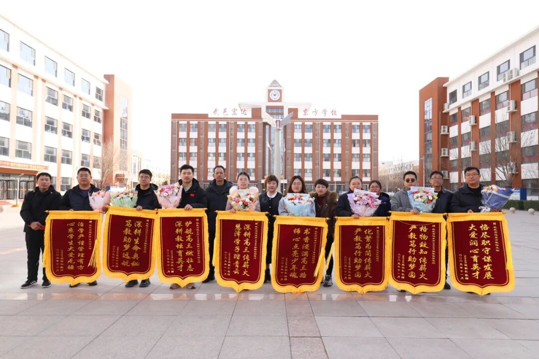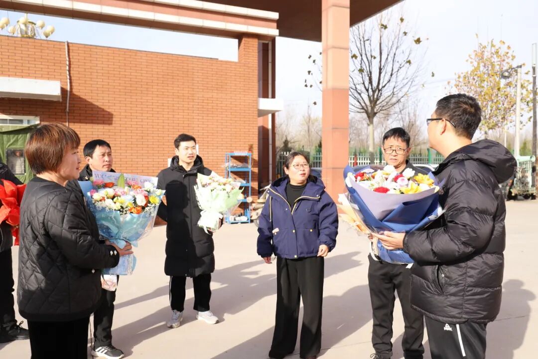 当12月第一天的冬阳洒满武邑宏达东方校园,高三2323班一场温暖的“双向奔赴”正在上演——鲜艳的锦旗列队而立,馥郁的鲜花吐露芬芳,学生家长代表将这份沉甸甸的心意,逐一送到李志伟教师团队每位成员手中。这一天,寒冷被温情驱散,责任被感恩铭记。