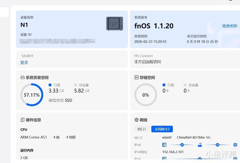 飞牛系统本质上是一个基于Linux的轻量级NAS系统,界面友好,操作逻辑像极了群晖,但资源占用却低得多。把这套系统塞进N1里,再挂上一块移动硬盘,一台功耗只有几瓦的私人网盘就成型了。