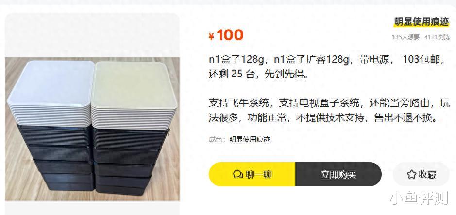 最近二手鱼里突然冒出一批100块钱的斐讯N1,还都是扩容到128G的版本,而且还电源还包邮,飞牛党们看到这价格估计都得愣一下,这玩意儿门槛是越来越低了,现在100块能买到128G的存储,这价格说真的,我都想去屯一批了。