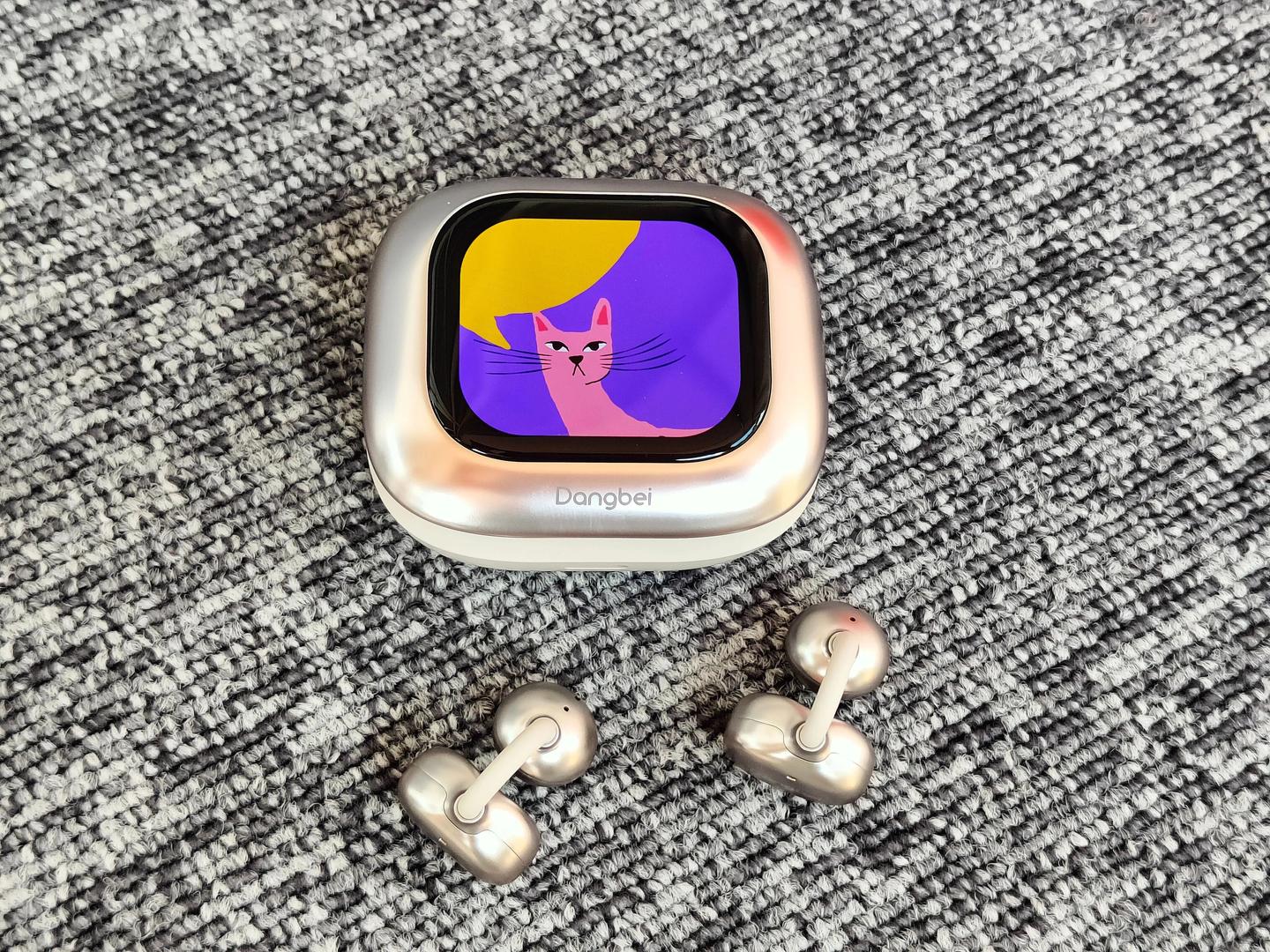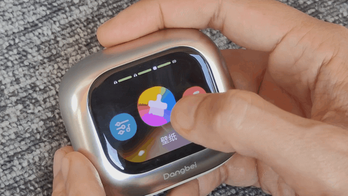 单只耳机仅 6g,拿在手里轻如羽毛,戴在耳上几乎无感。最好玩的是充电盒,自带 2.04 寸 AMOLED 屏!色彩饱和度和亮度远超普通屏幕,不仅能实时显示耳机和充电盒电量,还能直接控制音乐播放、切换 EQ 模式,甚至自定义壁纸,个性化十足。