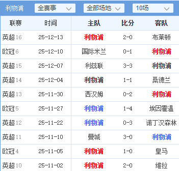 · 绝对优势:利物浦在双方近25次英超交手中赢了17场,只输过2次。上赛季两场联赛,利物浦更是打入11球。