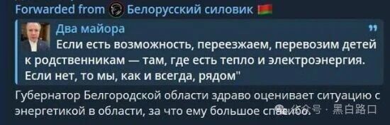 值得关注的是,俄罗斯别尔哥罗德州州长格拉德科夫在社交媒体表示,由于乌克兰无人机持续袭击,“电力供应无法完全恢复,建议居民冬季前往其他地区或国家……。“