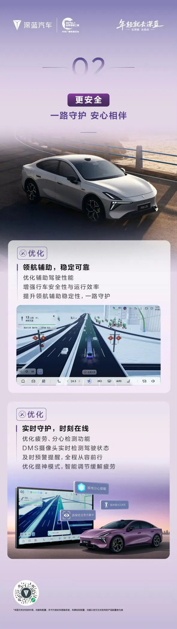 此次深蓝L06 OTA升级,通过优化辅助驾驶性能,在安全层面全方位进阶。高速场景实测700公里全程安全0接管,为长途出行保驾护航。通过优化疲劳、分心检测、提神模式,DMS摄像头实时检测驾驶状态及时预警提醒,助力用户全程从容前行;哨兵模式迎来优化升级,对车外靠近的行人、车辆进行预警识别,守护车辆停放安全。
