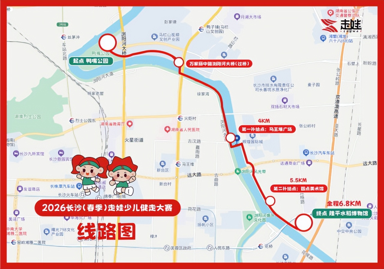 本次大赛以“走进长沙这本书”为主题,创新融合“体育+阅读”模式,打造兼具运动乐趣与书香氛围的亲子健走活动。赛道全新升级,全程6.8公里,参赛家庭从马栏山鸭嘴公园出发,沿浏阳河健身步道前行,途经马王堆广场、汉桥、圆点美术馆,最终抵达隆平水稻博物馆。沿途设置“阅读奇遇站”特色场景,串联城市地标与公共阅读资源,让亲子家庭在徒步中感受“天地皆书房”的独特意境。