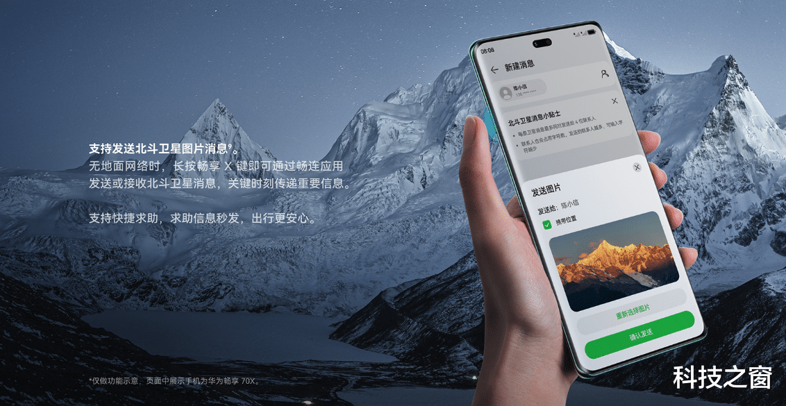 在现代社会,通信的稳定性至关重要。无论是身处繁华都市的高楼大厦,还是偏远山区的户外探险,稳定的网络连接都是我们保持与外界联系的关键。华为畅享 70X 尊享版搭载了双向北斗卫星消息功能,这一创新技术让通信不再受地面网络信号的限制。即便身处荒漠戈壁、深山密林等信号盲区,用户只需长按畅享X键,即可快速进入北斗卫星消息界面,向亲友或救援人员发送位置与求救信息(支持发送图片消息),确保在关键时刻能够与外界取得联系,为户外安全增添关键保障。