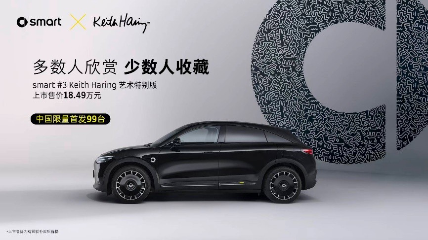 与此同时,“smart全球第57款限量款车型”——smart #3 Keith Haring艺术特别版同步开启发售,上市限时售价18.49万元,中国限量首发99台。