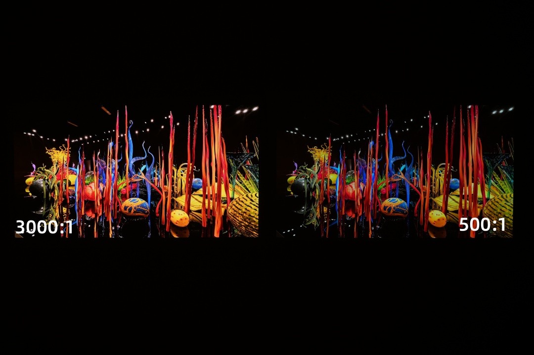 选购高对比度投影,首先要分清原生对比度与动态对比度。原生对比度是硬件物理极限,决定画质下限;动态对比度是算法优化结果,体现画质上限。家用场景建议优先选择原生对比度3000:1以上的机型,暗室观影、追求影院感则需5000:1以上。同时要警惕虚标参数,认准权威认证与实测数据,避免被虚假高数值误导。