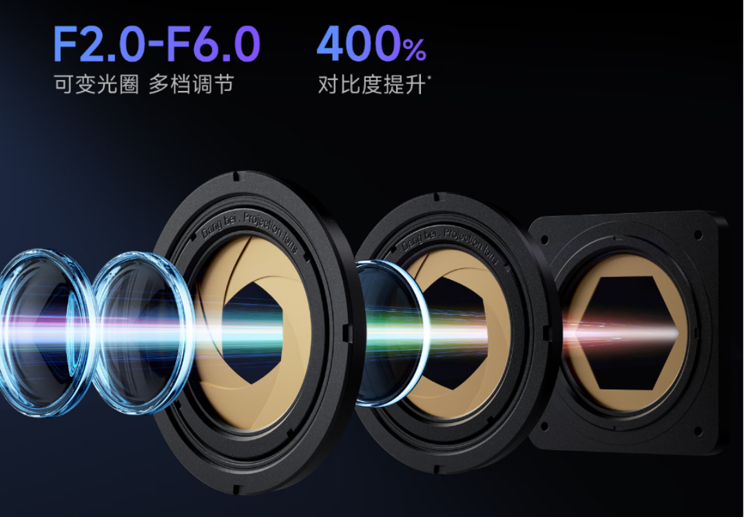 在万元级高对比度投影中,当贝S7 Ultra Max凭借硬核配置脱颖而出,成为2026年家用首选机型。它搭载行业首创仿生三阶可变光圈,模拟单反镜头光学原理,实现F2.0-F6.0多档调节,原生对比度高达8000:1,配合自研DynamicX深黑算法,动态对比度飙升至65000:1,暗场纯净度与细节解析力达到万元档天花板。