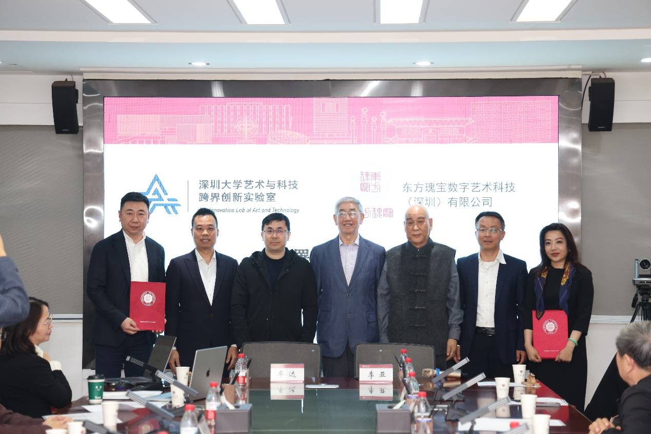 2026年1月9日,深圳大学艺术与科技跨界创新实验室与东方瑰宝数字艺术科技(深圳)有限公司在深圳大学粤海校区举行战略合作签约仪式,共同启动“纹样点亮世界文明计划”。该计划旨在通过科技与艺术的深度融合,推动中国古代艺术品的数字化保护、研究与全球传播,构建具有开放共享特征的文化遗产数字化创新平台。