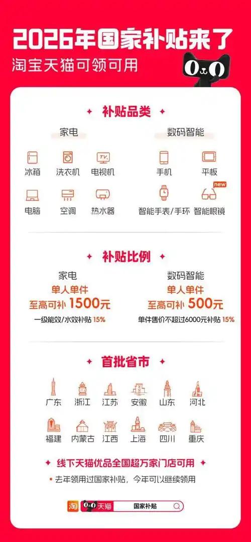新春重磅福利来袭!家电数码国家补贴正式覆盖27个省市,力度拉满、范围扩大,家家户户都能省大钱!不管是换家电、买数码,趁现在入手,直接省下半个月工资,错过再等一年!