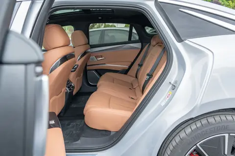 在后排的乘坐感受上,比亚迪汉DM-i还是设计的比较传统的,天窗采用了带遮阳帘可开关式的设计,加高的车身也很好的应对了新能源车底盘过厚的问题,车内垂向空间较为出色,坐进去的舒适度不错,但腿部的前后空间并没有比汉系列高出太多,整体表现中规中矩。