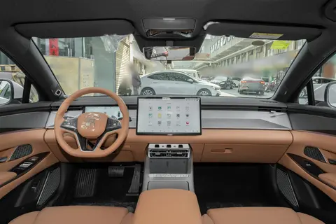 打开车门,两车的内饰风格立刻展现出截然不同的设计哲学。汉 L 就像走进一家高端酒店的行政套房,大面积软包、哑光金属感饰板,连副驾储物区都用皮质包裹,整体氛围主打一个 "低调奢华有内涵"。这种设计特别讨长辈喜欢,坐进去就忍不住感叹 "这才叫车嘛"。