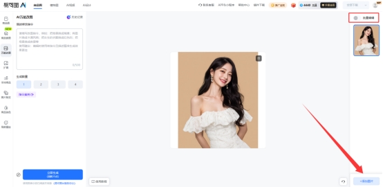 第三步,确认指令无误后,点击生成按钮,系统会自动根据你的描述进行图像处理,不需要额外操作。