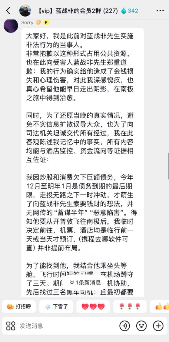 这出惊魂记的余波还没散尽,就有更离奇的“续集”上演了:本应亡命天涯的绑匪,竟深夜出现在蓝战非的粉丝群,声泪俱下地发布了一篇“澄清”小作文。