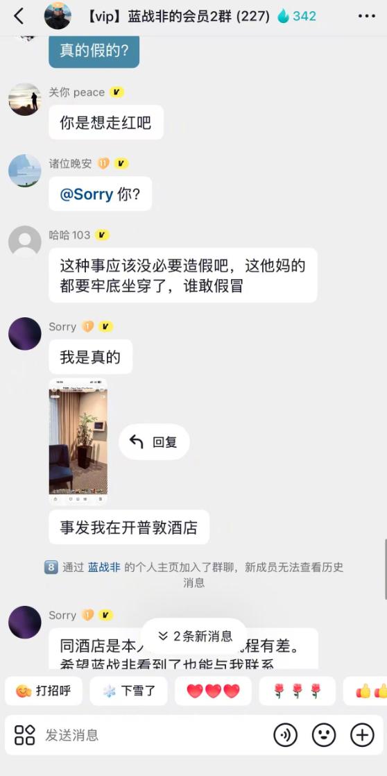 一位神秘的用户以“当事人”的身份,深夜现身蓝战非的粉丝群。在他的描述里,暴力和恐怖被悉数抹去,反而涂上了一层“走投无路”的油彩。
