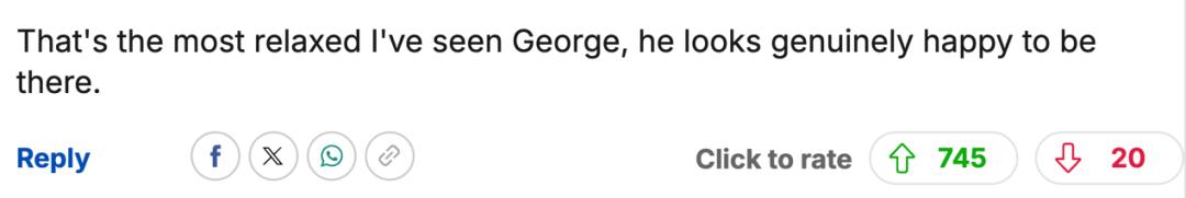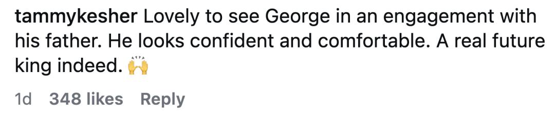 “乔治和爸爸的互动看着太可爱了。他看着自信又松弛,未来的国王养成中。”
