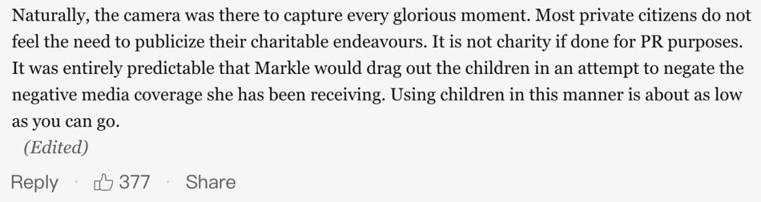 “超自然的呢,相机随时捕捉每一个荣耀的时刻。注重隐私的素人根本不会想用力宣传自己做慈善。要是为了公关宣传做的,那就不是慈善。这事儿太好解释了,梅根拖着娃出来想要平息她自己收到的那些负面媒体报道。想利用娃达到这种目的,low中之low。”