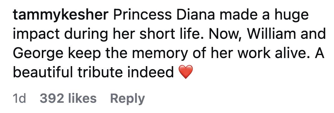 “戴妃短暂的一生带来了巨大的影响。现在威廉和乔治继续她的事业,确实是美好的致敬。”