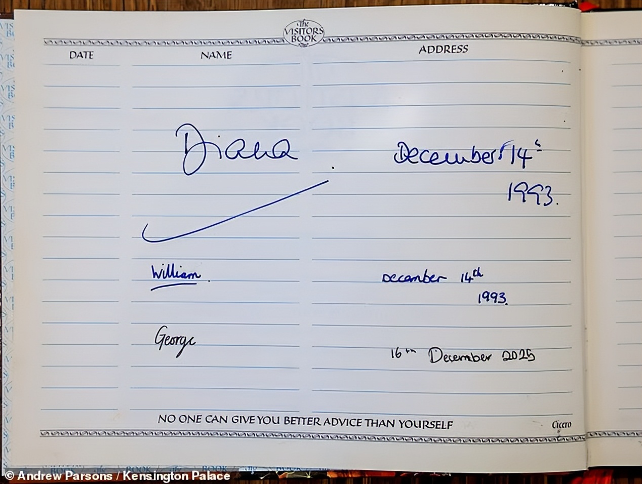 最妙的是,中心有一本访客签名书,工作人员找到了1993年戴安娜带着威廉第一次来时的签名和日期那一页。
