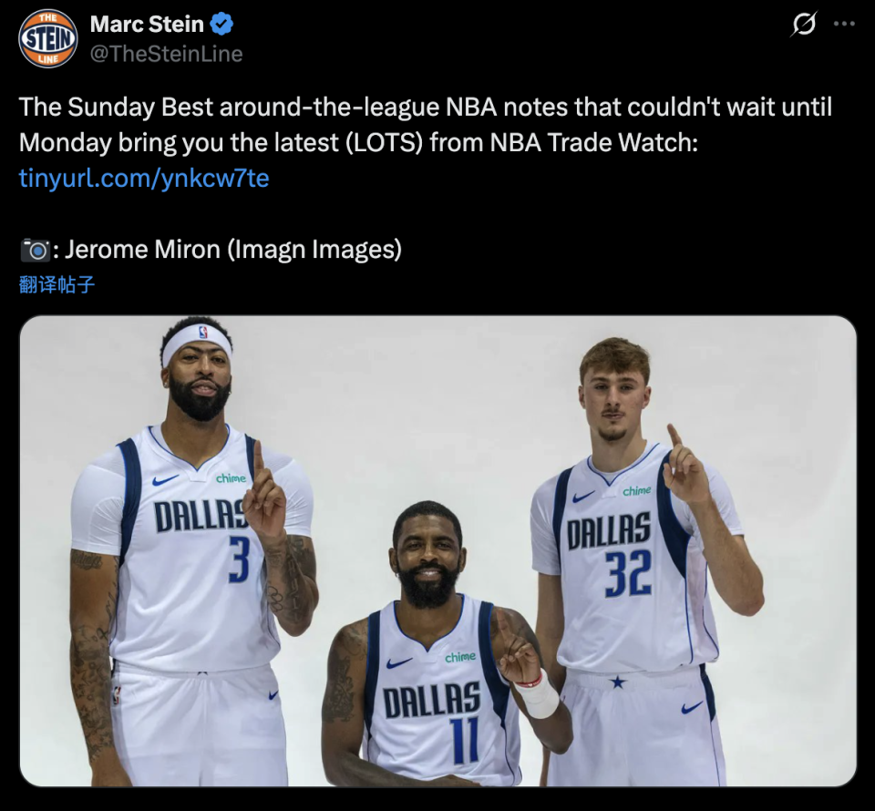 除此以外,据内部人士透露,独行侠展示还没有看到弗拉格、浓眉和欧文一起上场比赛哪怕一秒钟,据悉独行侠老板帕特里克-杜蒙特肯定是球队内部希望先看看这三人组合的表现,然后再做其他激烈的调整的人之一。他希望在完成大交易前能看到三人合体,根据他们的化学反应再做判断。或许,这会增加老鹰得到浓眉的难度。