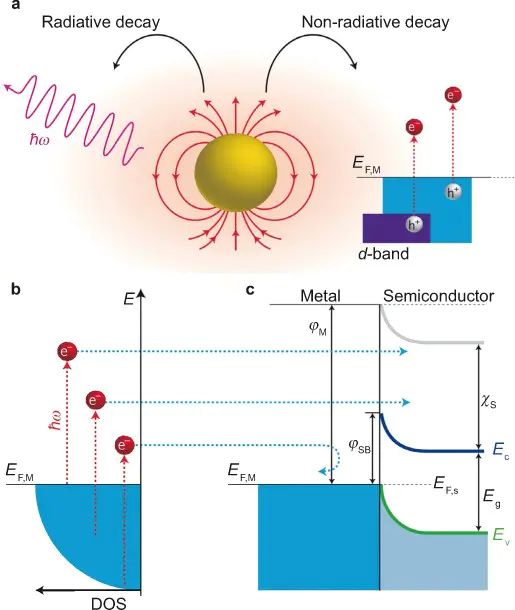 等离激元纳米结构与半导体接触时的能量转移与界面势垒示意。DOI: 10.1038/lsa.2016.17
