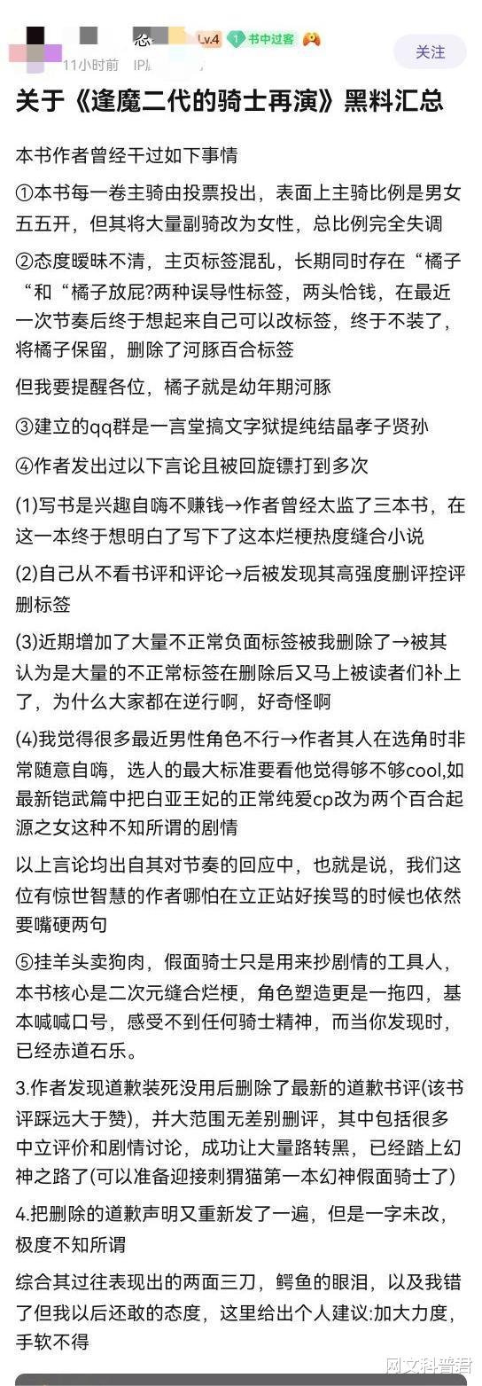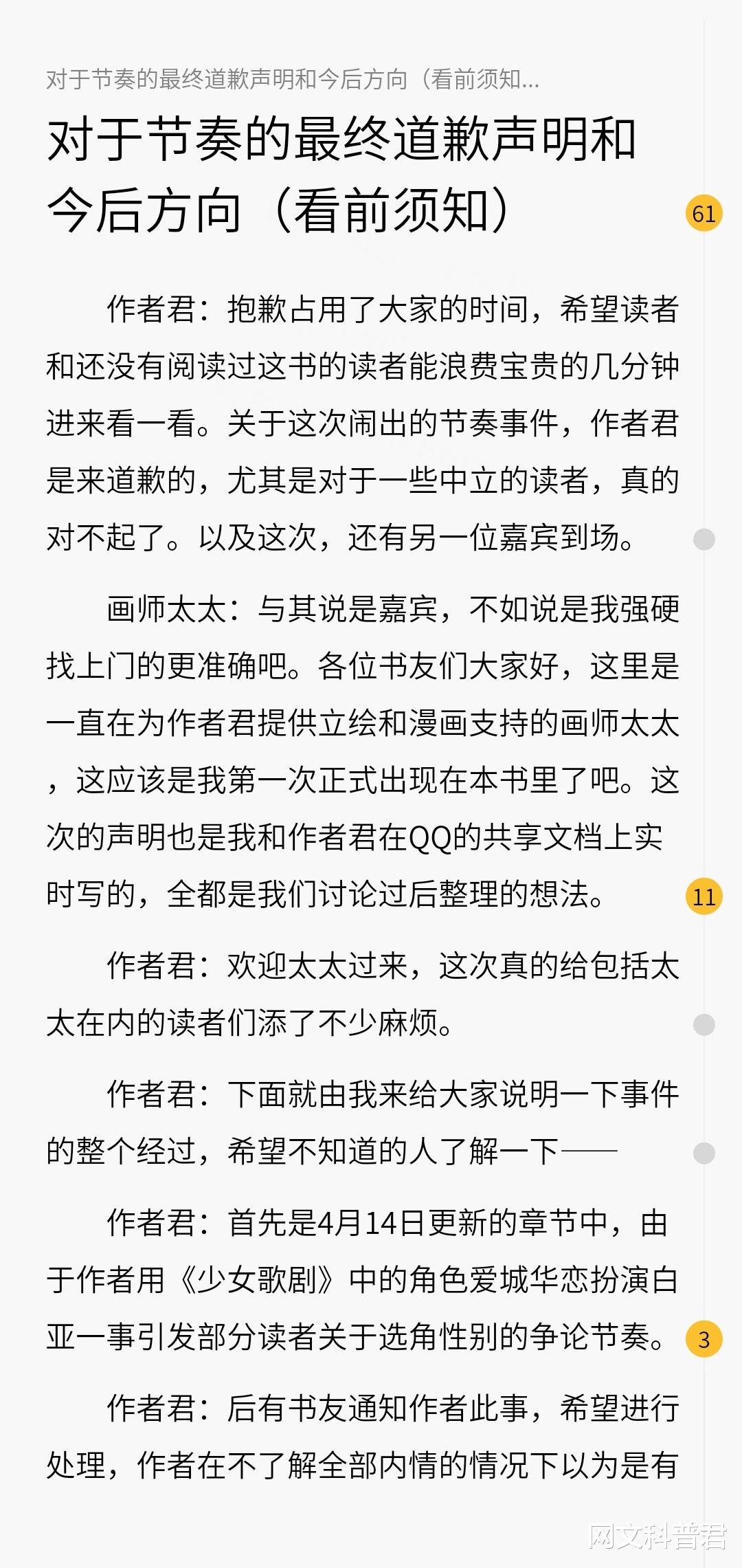 然后作者发了个单章,死不承认,认为自己想写什么就写什么,啥时候轮得到读者教作者写书了。