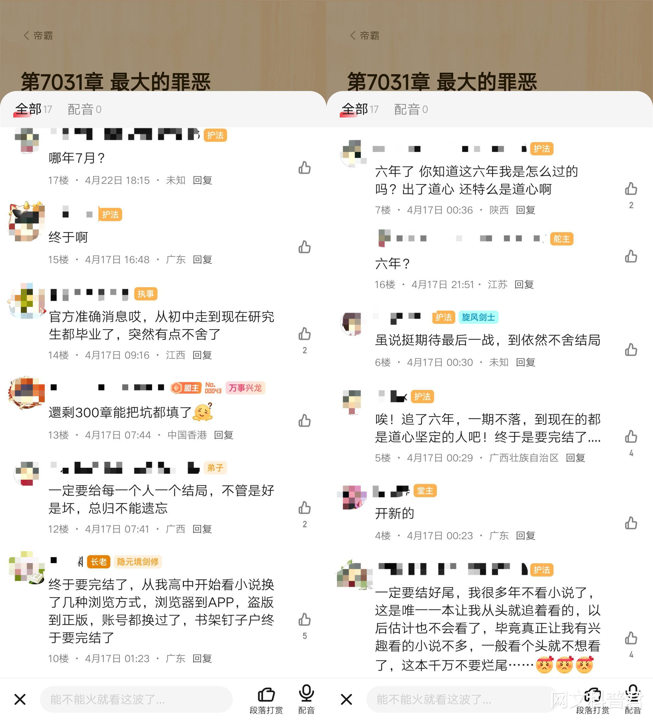 粉丝的评价基本就是追了那么久终于要完结了,这下面还有个从初中看到研究生毕业的。